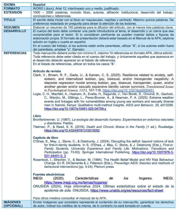 Todo autor deberá apegarse a los siguientes lineamientos: